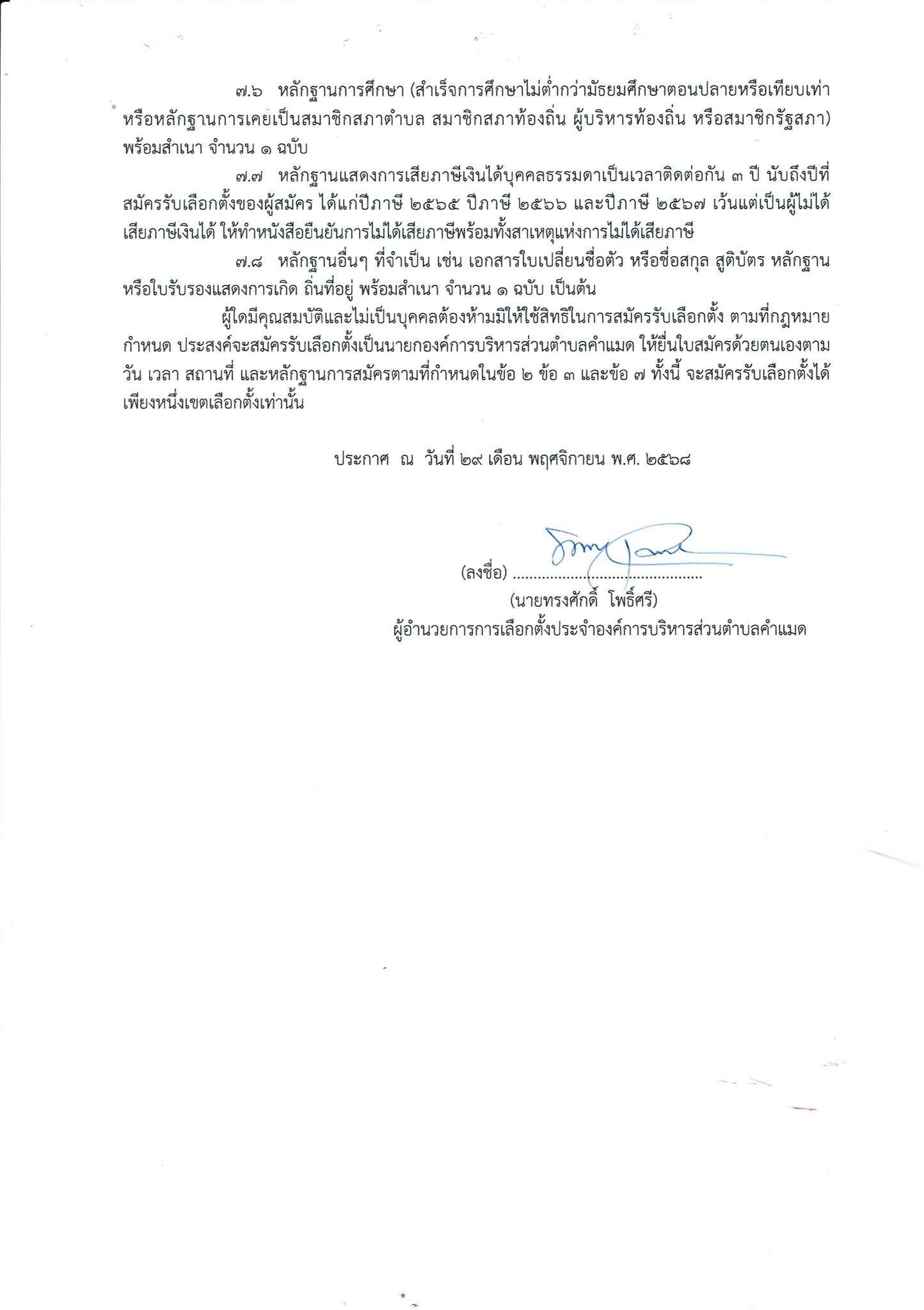 ประกาศผู้อำนวยการการเลือกตั้งประจำองค์การบริหารส่วนตำบลคำแมด